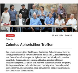 10. Internationales Aphoristikertreffen am 25./26. Mai 2024 in Hattingen/Ruhr