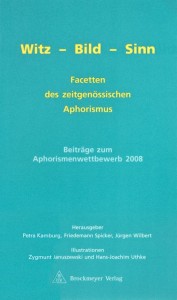 Kamburg, Petra, Friedemann Spicker, Jürgen Wilbert (Hrsg.): Witz – Bild – Sinn. Facetten des zeitgenössischen Aphorismus Bochum: Brockmeyer 2016 |